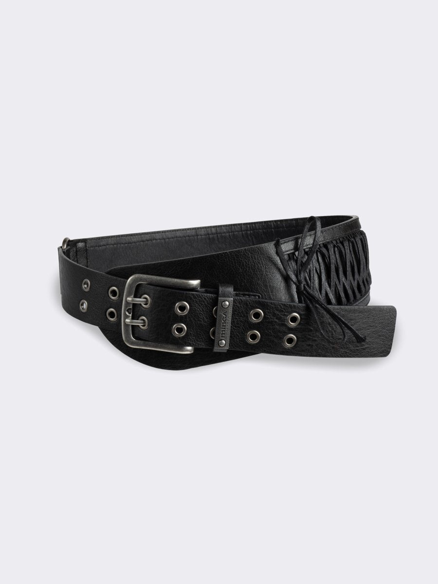 • Black vegan leather wide belt