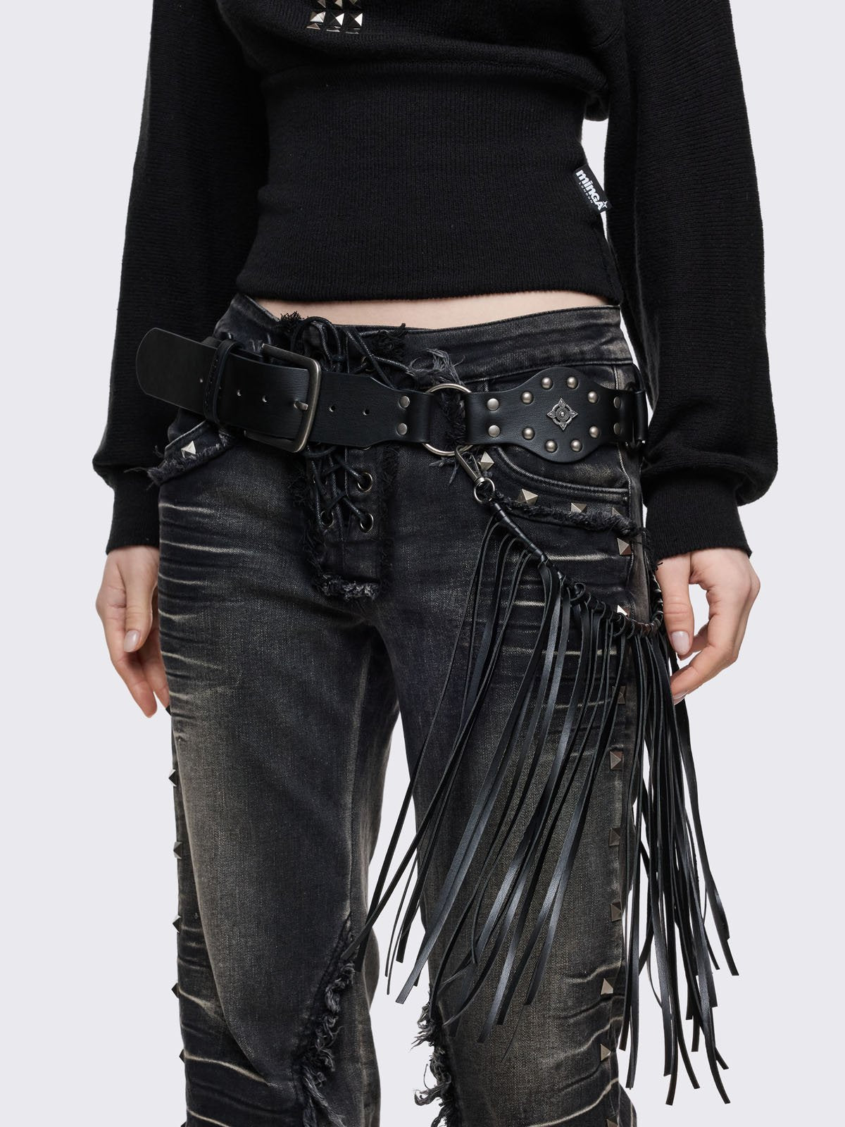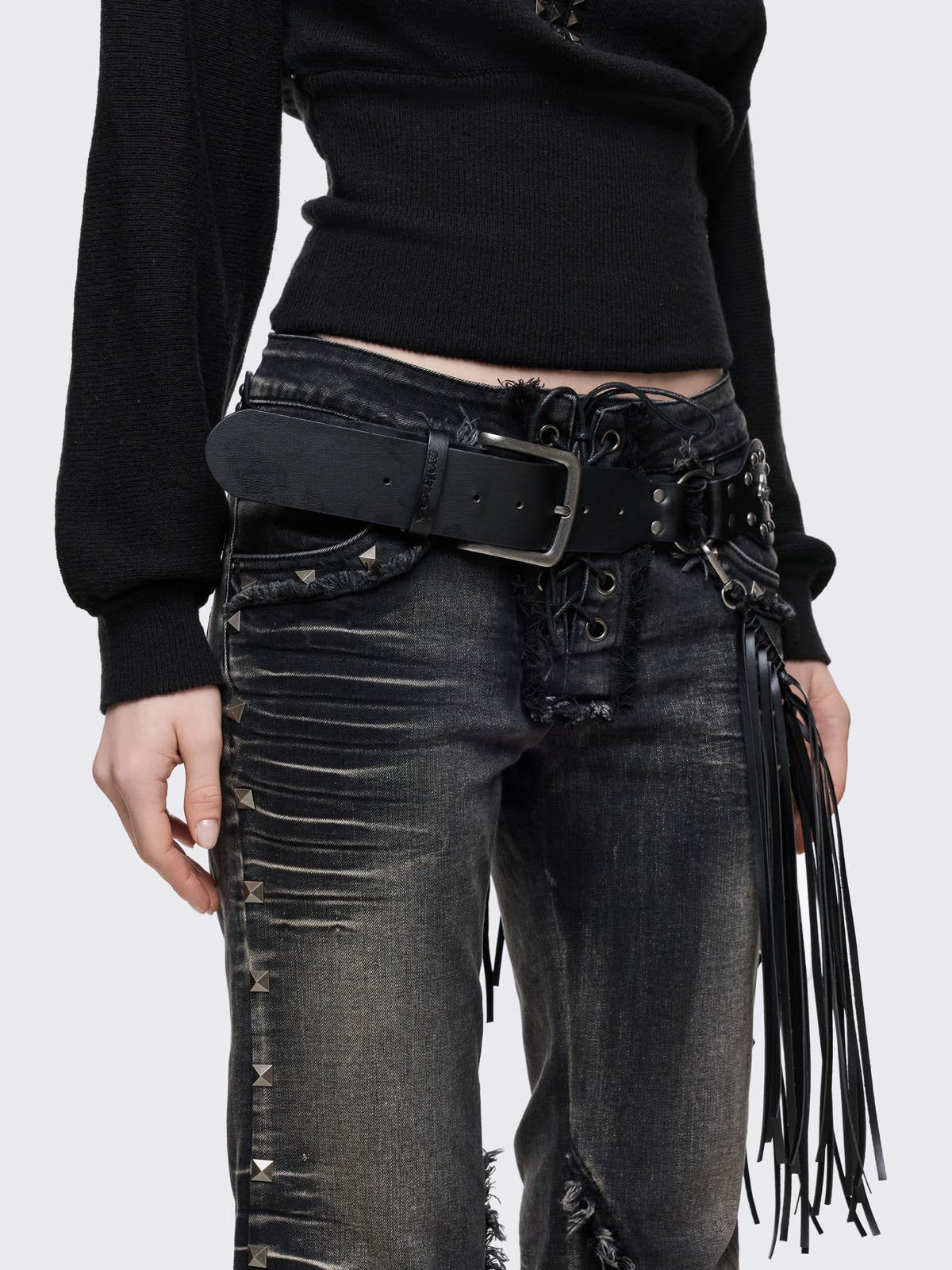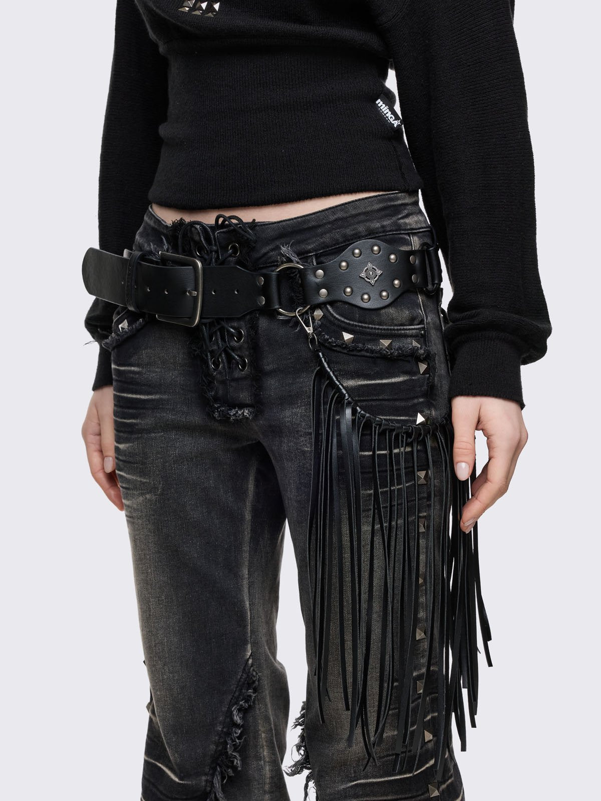 • Black vegan leather concho belt