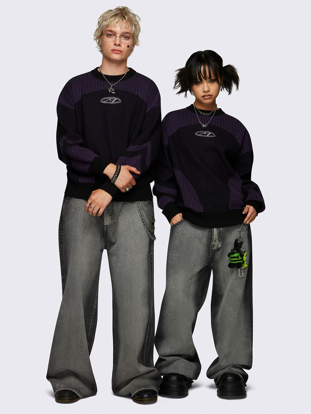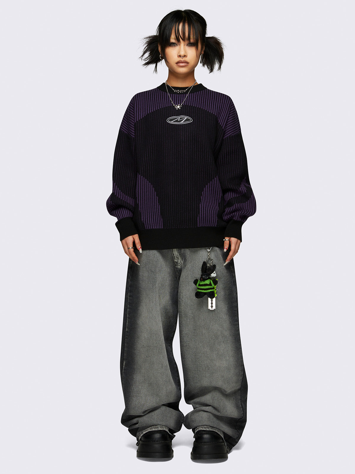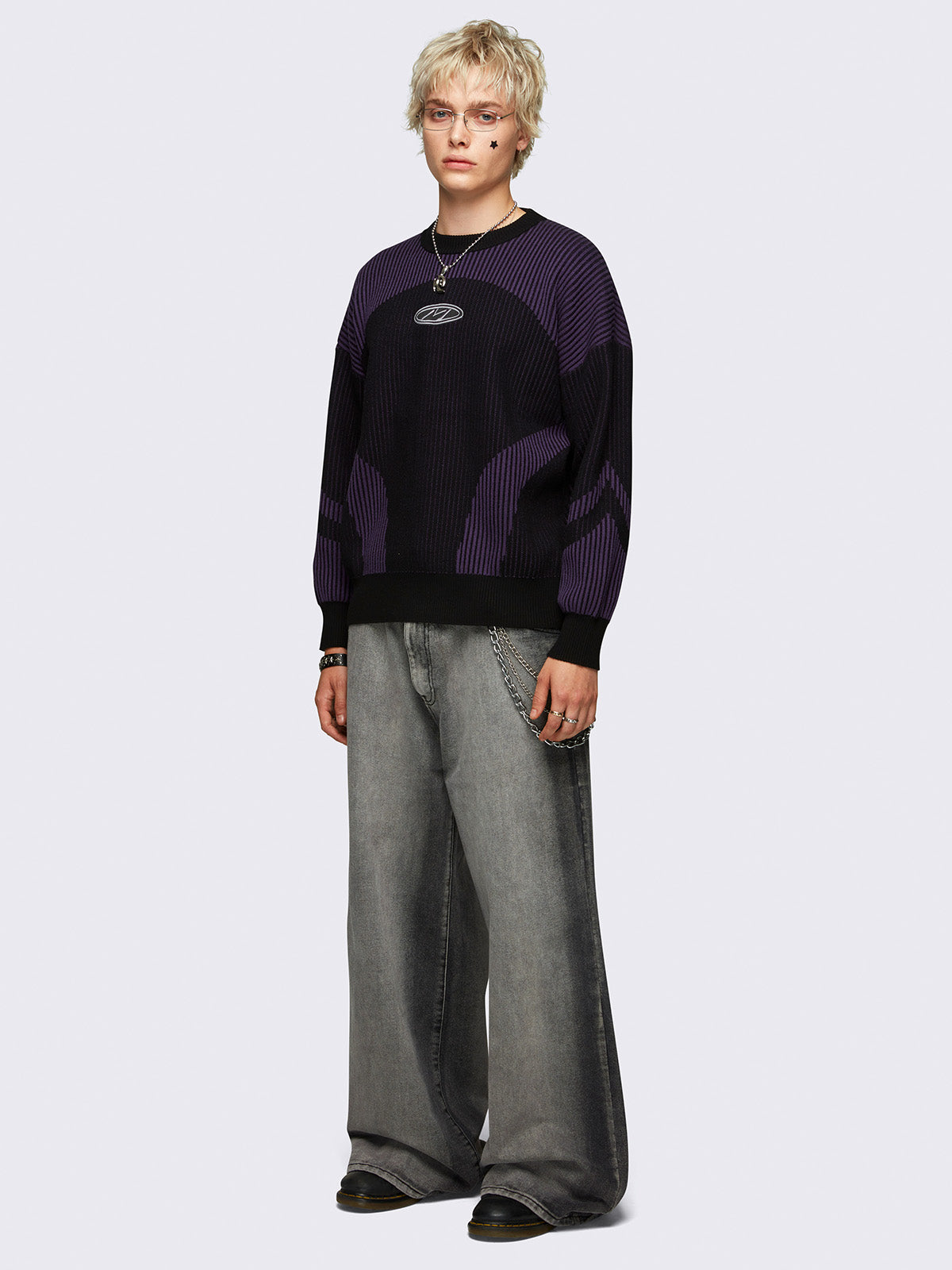 • Black and purple color block knit jumper