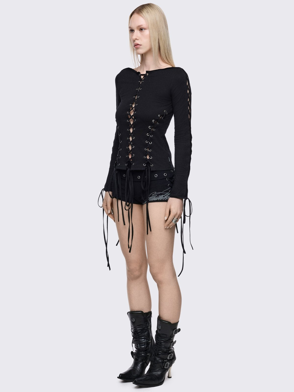 Black long sleeve lace-up top.