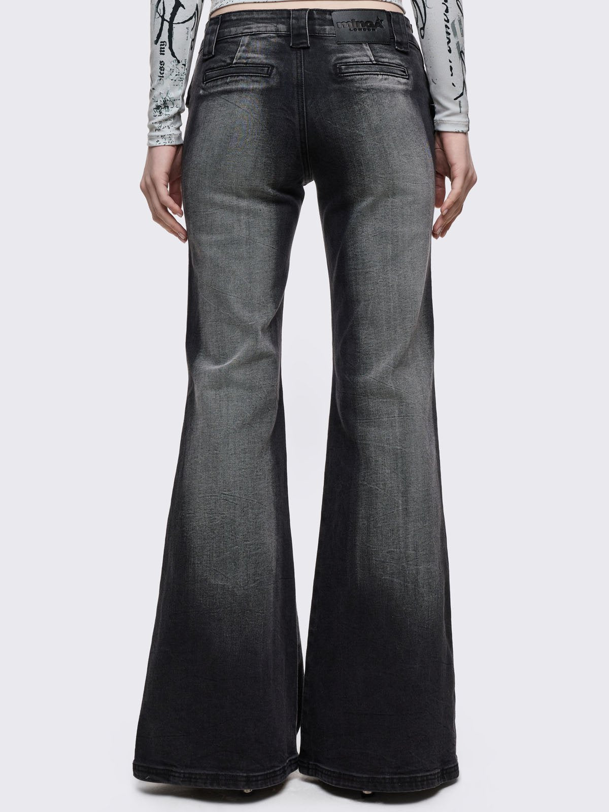 • Grey flared jeans