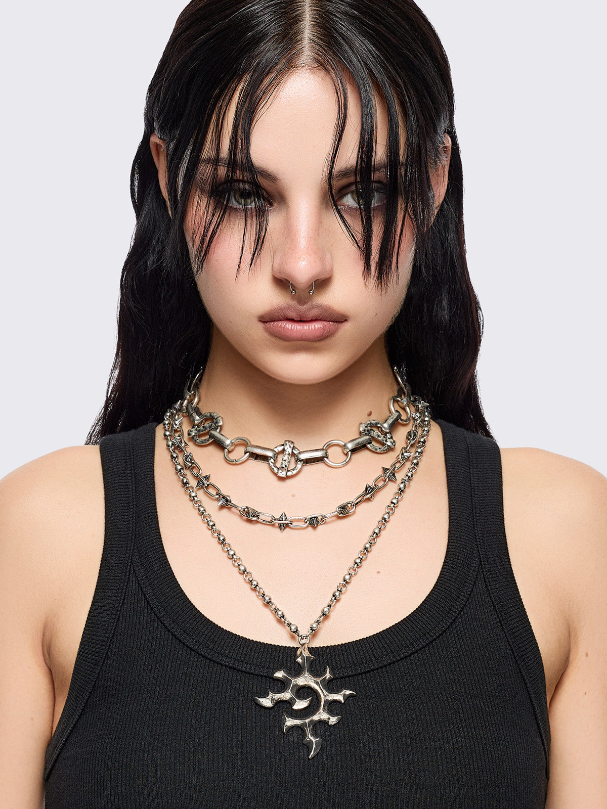 • Set of 3 silver necklaces